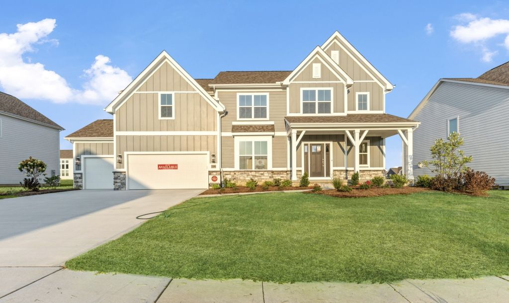 The Pierce is a beautiful 4 bedroom 3.5 bath two story home with an open two story great room. The wall of windows brings natural light directly into the kitchen and great room. Entering from the spacious front porch you'll find a large flex room/den and an open foyer with a powder room. The great room has a gas log fireplace and an open floor plan. The large kitchen is designed to give you tons of space to gather and entertain with the oversized island and 42" soft close cabinetry.The adjacent pantry and coffee bar continue the storage options. Entering from your 3 car garage you'll find a mudroom with a closet, drop zone, and custom built lockers/bench. On the 2nd floor you'll enjoy 4 bedrooms including one suite, two bedrooms sharing an additional hall bath, and your primary suite. The primary suite has two walk-in closets, double vanities, and a deluxe tiled shower with a bench seat and transom window. This home also includes a full basement with 9' poured walls and a roughed-in full bath. Farmhouse elevation with Hardie-Plank and stone exterior and a large front porch are perfect for gathering. This home sits on over 1/3 acre with a deep back yard. The Builder is adding landscaping, lighting throughout, and a full suite of KitchenAid appliances at no additional cost to Buyer! This is over a $15,000 value. Call or email for more design information and tour.